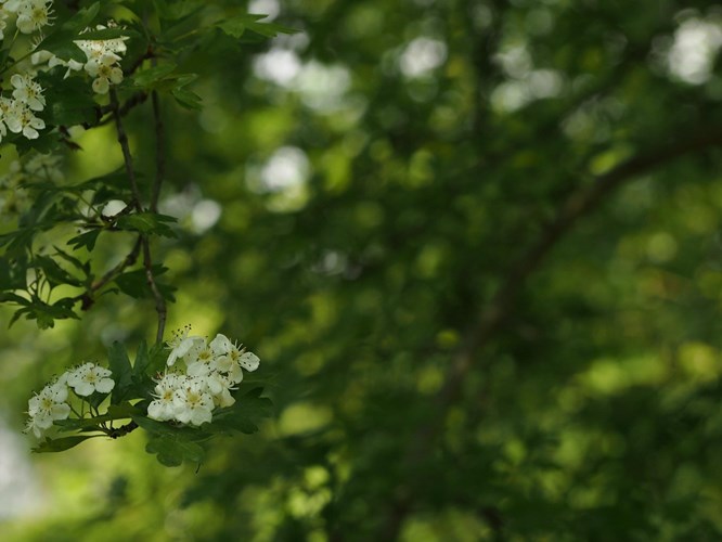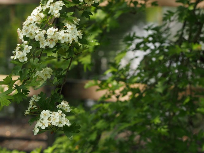 Doordat meidoorn snel groeit, heb je ook snel jouw ondoordringbare haag gecreëerd. Eenstijlige meidoorn bloeit in de maanden mei en juni met witroze bloemen.