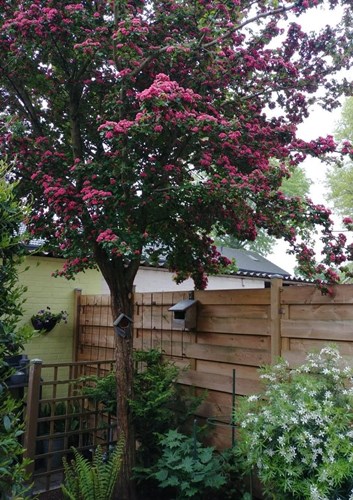 Tweestijlige meidoorn 'Paul's Scarlet' is een bijzonder mooie boom en zeer decoratief door de afschilferende bast en de knalroze bloemen. 'Paul's Scarlet' is zowel te verkrijgen als struik als boom. Mocht je Tweestijlige meidoorn 'Paul's Scarlet' aanschaffen als kleine boom dan wordt deze 800 tot 1000 centimeter hoog. Tweestijlige meidoorn 'Paul's Scarlet' is zeer winterhard. Verliest in de winter haar bladeren.