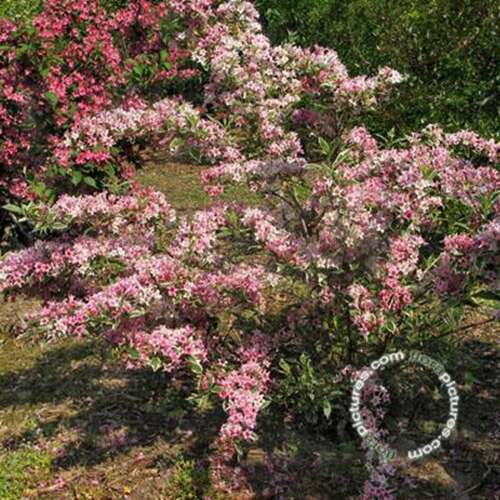 Weigela 'Nana Variegata' bloeit met lilaroze tot roze trompetvormige bloemen in de periode mei - juli.. De bladeren zijn groen met een crèmegele rand. Het is een struikje met een compacte, bossige groeiwijze dat in de winter haar bladeren verliest. Weigela 'Nana Variegata' is een vlinder- en bijenaantrekkende plant. Deze Weigela wordt maximaal 125 centimeter hoog. Na de bloei mag deze Weigela 'Nana Variegata' direct gesnoeid worden. Winterhard.