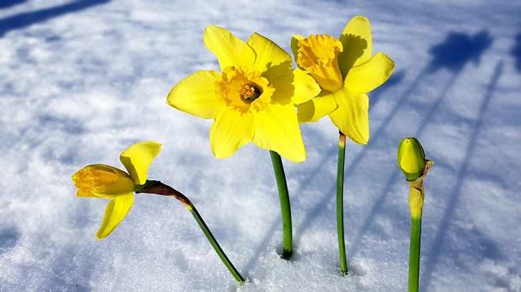 Narcissen zijn echte doorzetters. Een rare gewaarwording die gele bloemetjes zo midden in de sneeuw. Het zijn aankondigers van een nieuw seizoen. De winter wordt achter gelaten en we kijken weer vooruit naar warmere dagen.