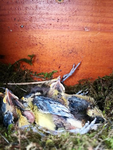 Tijdens het ringen vonden we dit nestje koolmezen waarvan al de jongen plots gestorven zijn, vermoedelijk door vergif. De slachtoffers waren goed doorvoed, dus niet omgekomen door ontbering omdat de ouders niet meer naar het nest kwamen. Vanwege de vele tuintjes met buxusplantjes durf ik de link leggen met een behandeling tegen de buxusmot...ook vergiftigde egels komen ineens veel voor in opvang centrums incl kauwen en eksters etc.