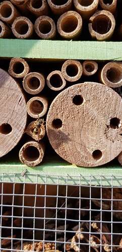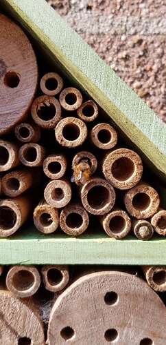 Ik heb regelmatig bezoek bij mijn bijen hotel, maar heb het idee dat ze er niet zo gelukkig mee zijn.