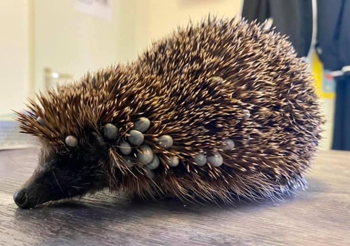 Ik ben al niet zo’n fan van spinnen en dus ook niet van de spinachtige egelteek (ixodes hexagonus). Maar egels dragen teken met zich mee. Daar trekt de egel zich over het algemeen niks van aan en de teek bijt zich aan het egellijfje vast om er na een aantal dagen drinken weer vanaf te vallen. De teek gebruikt een egelnest als ontmoetingsplaats en om zich voor te planten. Soms lijkt het wel of zo’n nest van teken zich aan 1 egel heeft gehecht. De egel op de foto had zo’n nest volgezogen volwassen teken bij zich maar deze grote zijn ze er vrij gemakkelijk af te halen. De egel is nog even aan het aansterken in de opvang maar kan binnenkort weer terug de vrijheid tegemoet.