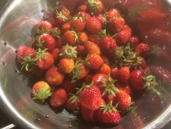 De opbrengsten (niet uitgegeven €) bedroeg in 2019 aan groente € 1.473,- aan klein fruit € 927,- en aan ruilhandel en verkoop (jam, eieren, komkommer, courgettes etc.) € 265,- in totaal € 2.665,-