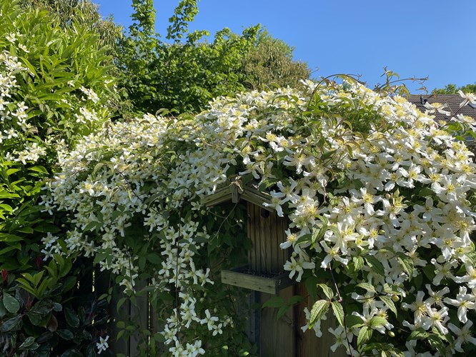 Hier plaats ik Clematis montana 'Alba'