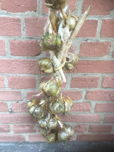 P.s. 2 jaar geleden begonnen met 2 bollen olifantenlook 1e jaar 11 bollen geoogst en vorig jaar 54 die we vandaag de 13e oktober gezet hebben. 40 in de volle grond en de rest in pootpotjes.