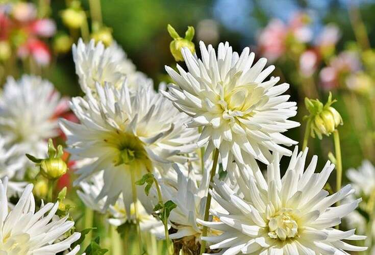 Zolang zich geen nachtvorst aandient, bloeien de dahlia's. Van oorsprong horen ze thuis in Midden-Amerika (Mexico), maar in ons land is veel aan de cultuur gedaan.