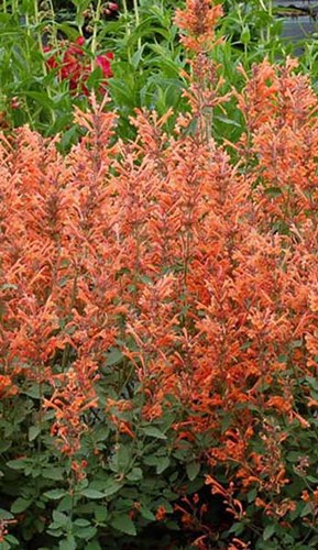 Agastache of Dropplant is een geslacht met een 20-tal verschillende soorten nog veel meer varieteiten. De dropplant (Agastache foeniculum) is een vroege vogel: nog voor er een deftig lentezonnetje te bespeuren valt, staat daar al het fascinerende paarsgroene loof te schitteren. Hun jonge bladeren hebben een aantrekkelijke paarse tint, waardoor het een goede achtergrond is voor vroege zomer bloemen. De hoogte varieert van 0.45 cm tot 2 meter. Zodra de blauwpaarse aren er zijn, tegen juli, worden de vlinders en de hommels helemaal gek. En hartje winter staat Agastache nog altijd overeind, terwijl de koolmeesjes op de stengels balanceren, op zoek naar de allerlaatste zaadjes.