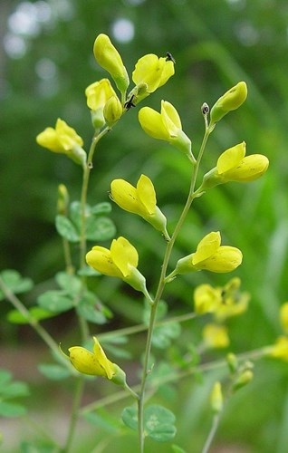 Baptisia tinctoria is met slechts 60-90 cm hoogte en 30 cm breedte de sierlijkste soort. De planten hebben omgekeerd eivormige bladeren en kortere, maar zeer talrijke bloemtrossen met gele of crèmekleurige, tot 2 cm grote bloemen.