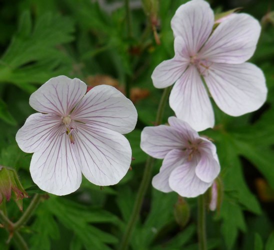 Sommige soorten bloeien met slechts enkele bloemen tegelijkertijd per stengel, gedurende een redelijk lange bloeitijd. Andere soorten openen hun bloemen allemaal tegelijkertijd. Daardoor is hun bloeitijd korter. Soms volgt er nog een tweede bloei later op het jaar. Qua kleur zit je met Geranium goed voor wit, roze, lila, violet, blauw en paars en alle schakeringen daartussenin! Sommige soorten met geaderde bloemblaadjes.