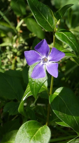Bloeit met knalblauwe tot blauwpaarse bloemen in de maanden februari tot en met mei.