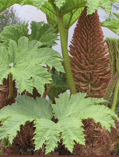 Gunnera is een geslacht met 50 niet winterharde, kruidachtige en overblijvende planten, meestal rizoomvormend. Het geslacht varieert van kruipende, overblijvende dwergsoorten tot majestueuze planten, die grote groepen bladeren vormen, geschikt om aan de oever van een meer of vijver te houden. De grootbladige soorten zijn het meest bekend al bestaan er ook erg lage vormen van Gunnera.