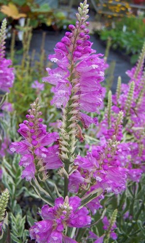 Is een polvormende, bladverliezende vaste plant met een opgaande vorm en getande, lancetvormige, grijsgroene bladeren. Deze scharnierplant bloeit van juli tot september met roze, buisvormige bloempjes gegroepeerd in tot 20 cm lange bloemaren. Hoogte 0.7-0.9 m