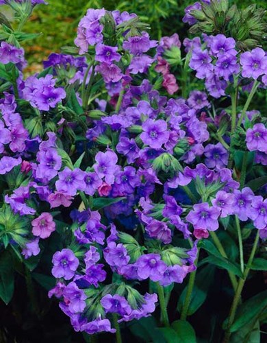 Pulmonaria angustifolia is thuis in de vochtige bossen van Noord- en West-Europa en vormt dichte tapijten van groene bladeren. Uit roze knoppen verschijnen blauwe bloemen. Beproefde rassen zijn ‘Munstead Blue’, ‘Azurea’, ‘Mawson’s Variety’ en ‘Blaues Meer’.