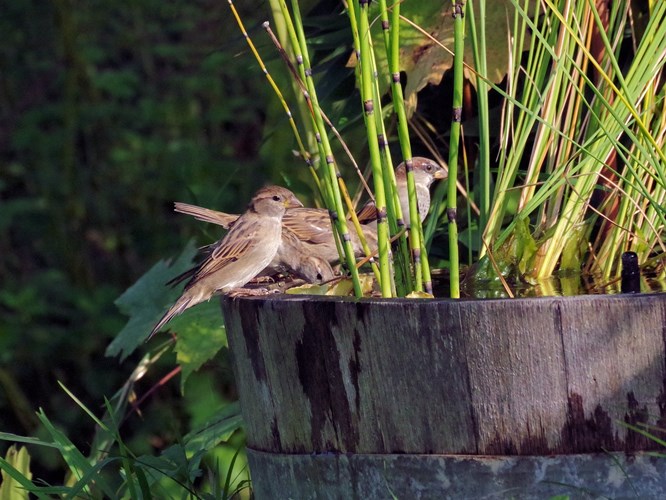 Voor vijverbezitters is het zaak een schuin aflopend, ondiep deel te maken dat volstaat als vogelbad. Gebruik daarvoor bijvoorbeeld een platte steen of grind.